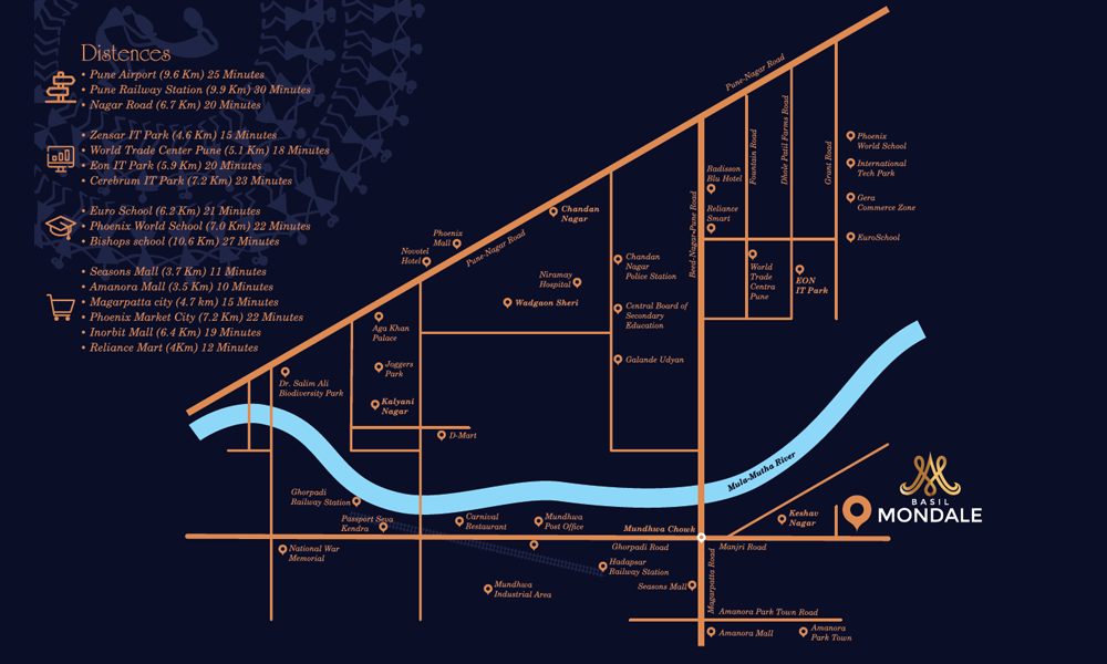 Get a new apartment at Basil Mondale in Pune Investors and homeowners planning to buy a new apartment in Pune must have a look at Basil Mondale. Developed in Keshav Nagar, this estate comes with a host of modern amenities that can refine your lifestyle. Located strategically in Mundhwa, this project appeals to millennials and corporate professionals with a wide range of lifestyle amenities. One can choose from different configurations of 2 and 3 BHK apartments in this estate. If you are looking for an aristocratic lifestyle with modern amenities, this estate will be the right choice. Lifestyle at Basil Mondale Mundhwa looks alluring with a host of modern amenities. Residing in these elegant homes, you can access a wide range of facilities to keep you engaged throughout the day. In the clubhouse, the developers have integrated different amenities that appeal to the lifestyles of millennials and working professionals. For fitness and sports enthusiasts, the estate comes with a